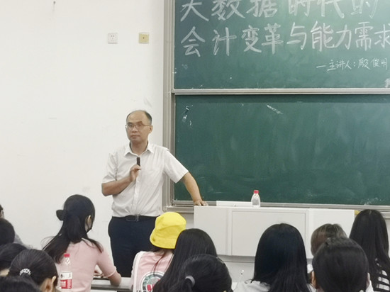 首先,殷俊明指出我們正處于一個科技飛速發(fā)展的人工智能時代。人工智能具有迅速處理分析信息、進行深度學(xué)習(xí)、擁有絕對理性、定制個性化、產(chǎn)生乘數(shù)效應(yīng)這五大優(yōu)勢。接著,殷俊明向同學(xué)們講述了會計價值鏈的價值轉(zhuǎn)移。會計人員的工作重心從會計信息錄入、整理、分析、篩查、檢驗等轉(zhuǎn)移到會計信息的篩選、審核等關(guān)鍵環(huán)節(jié)上。人工智能的應(yīng)用,優(yōu)化了會計信息處理的效率和速度,會計人力資源得以全面整合。隨后,殷俊明介紹了會計專業(yè)的大學(xué)生未來發(fā)展方向,如管理型財務(wù)專家、信息系統(tǒng)實施顧問等。