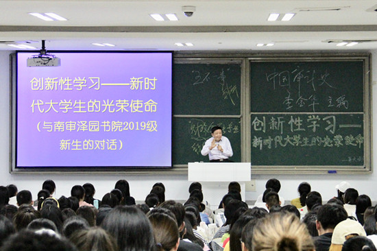 9月27日晚,澤園書院邀請我校退休教師蔣大鳴以“創新性學習——新時代大學生的光榮使命”為主題為新生做講座。澤園書院院長肖建新教授主持并向到場的澤園書院2019級300多名新生介紹了蔣大鳴教授的簡歷與取得的成就。