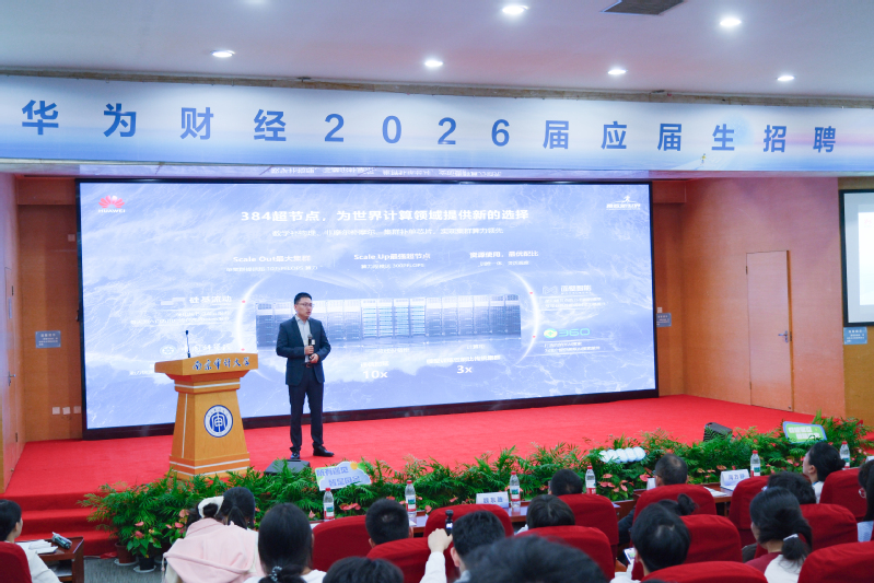 在校黨委常委、副校長周方舒致辭后,華為財經經營管理部總裁楊波進行了主題宣講,他通過“行業趨勢是天時、成長平臺是地利、同舟奮楫是人和”三個方面為在場學子勾勒出一幅清晰的未來職業發展圖景。深入剖析了身處AI重塑萬物時代的華為秉持“解難題、做難事”的精神,致力于構建萬物互聯的智能世界;詳細介紹了華為全球化的業務布局與財經體系的戰略角色;闡釋了華為“同舟奮楫”的團隊文化與精心構建的人才培養體系。他特別稱贊了華為南審人的卓越表現,指出他們以扎實的專業功底和務實作風,在華為財經平臺上快速成長,已成為團隊的中堅力量,并熱情歡迎更多優秀南審學子加入,共同成就未來。