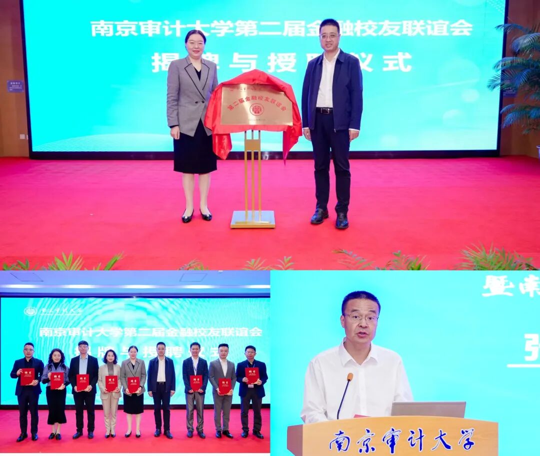 南京審計大學校友工作辦公室主任張成宣讀了第二屆金融校友聯誼會換屆的批復。南京審計大學副校長李乾文與新任執行會長王慶共同為“第二屆金融校友聯誼會”揭牌,并為秘書處代表頒發聘書,標志著新一屆金融校友聯誼會正式啟航。