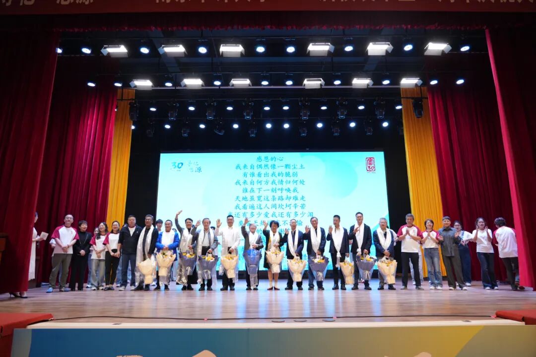 校友代表向教師代表敬獻哈達并獻花感謝師恩,大學生藝術團的在校生們和全體校友齊唱《感恩的心》,用歌聲祝福同窗、祝福老師、祝福南審的明天更加璀璨輝煌。