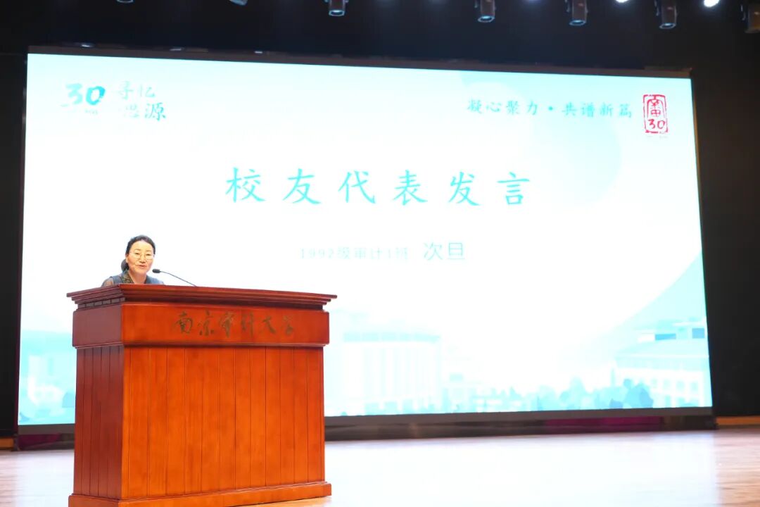 她說:“1995年,你們帶著青春、帶著愛情、帶著美好憧憬,攜手從南審校園走向社會;同樣是那年6月,我帶著責任、帶著建設好南審的使命,獨自一人從北京來到南京、來到南審。今天不僅是大家畢業30周年返校的日子,也是我同南審結緣30周年的日子。這30年,我們的南審,走過一段追風逐月、風雨兼程、激情燃燒的奮斗之路;南審的你們,走過一段心系母校、相知相守、相濡以沫的同心之路。今天你們攜手歸來,也是“心系南審”最美的傳承!祝愿彼此越來越好!”