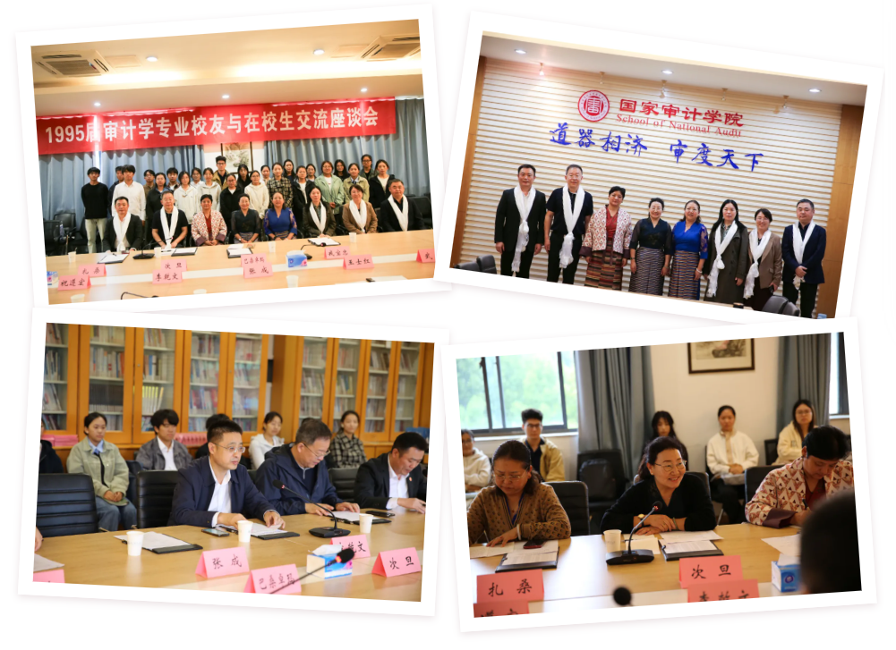 中午,國家審計學院在敏行四樓會議室以“扎根西藏、情系母校”為主題召開1995屆審計學專業校友與在校生交流座談會。西藏自治區審計廳黨組成員、副廳長次旦,西藏自治區審計廳固定資產投資審計處副處長、一級調研員巴桑卓瑪,西藏大學財經學院會計系副教授扎桑,西藏蘇拉供應鏈管理有限公司董事長戎寶忠等校友重返母校,校黨委常委、副校長李乾文,人事處處長祝遵宏,校友工作辦公室主任張成,國家審計學院黨委書記李衛紅,院長王士紅,澤園書院黨委副書記徐婷婷及師生代表參會。